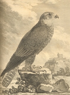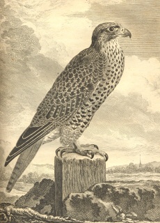 Een reusachtige, sterke en woeste valk, die met gemak arend en kraanvogel Grus grus uit de lucht slaat en die zo fel is dat hij er zoveel mogelijk achter elkaar naar beneden haalt.