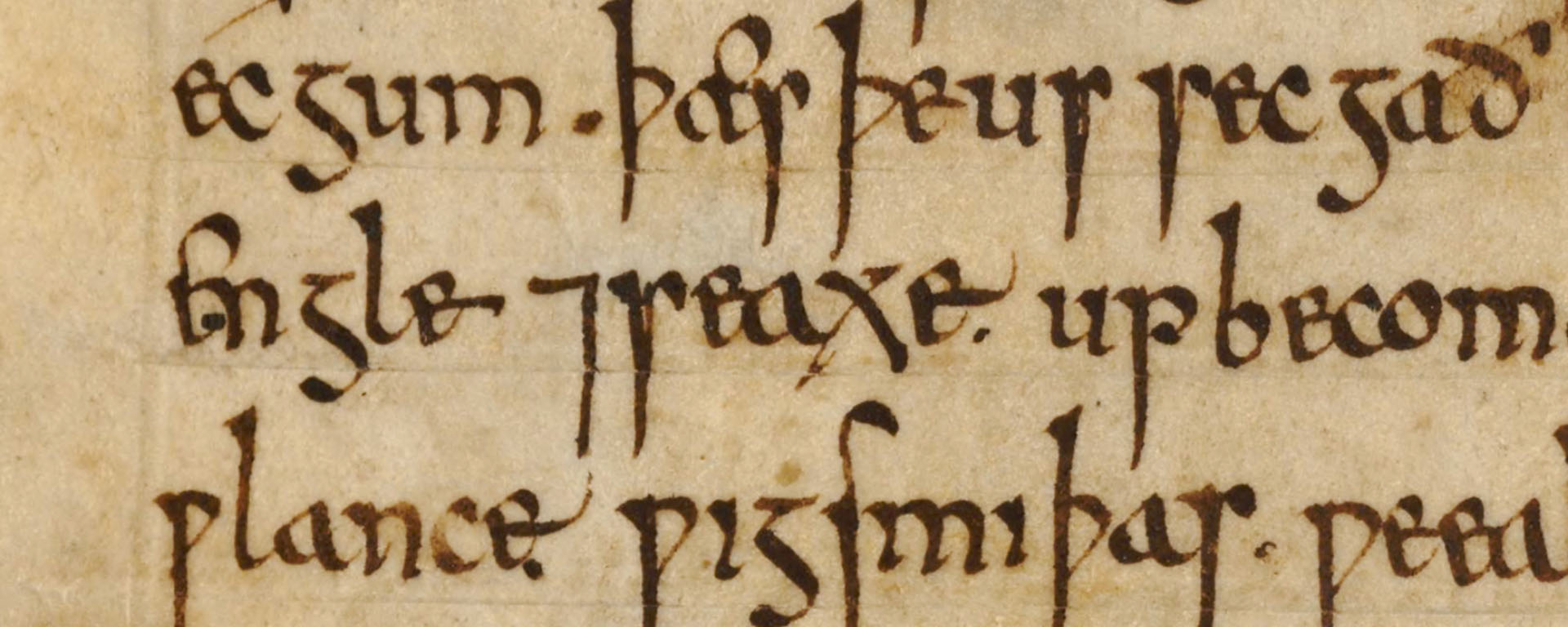 De afbeelding bovenaan toont een uitvergroting van Engle ⁊ Seaxe in een van de handschriften van de kroniek. Het teken is een zogenaamd Tironisch et, dat net als het teken & voor ‘en’ staat.