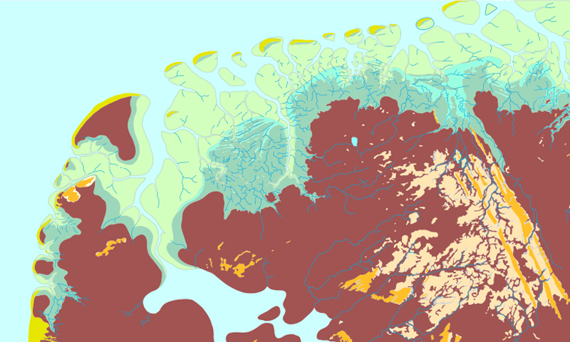 Uitsnede van Paleogeografische kaart door RCE, TNO, Deltares. Enige rechten voorbehouden.
