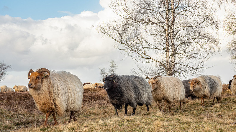 Drentse heideschapen achter elkaar door Jan R. Ubels. Enige rechten voorbehouden.