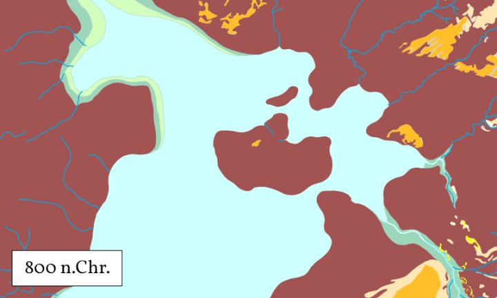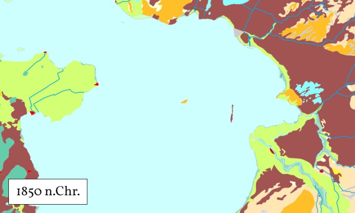 Inbegrepen, zo vervolgt de oorkonde, zijn alle weiden, wegen en wateren, de visplekken en de roerende en onroerende goederen. Van akkers wordt echter geen gewag gemaakt, in lijn met wat oudheid- en bodemkundigen hebben vastgesteld: de gronden boden daar weinig gelegenheid voor landbouw. De onderstaande zes kaarten tonen hoe het landschap er op verschillende tijden in de afgelopen tweeduizend jaar eruitgezien moet hebben en veranderd is, aanvankelijk met een overdaad aan veen rond een eenzame keileemhoogte, de plek van het dorp dat ons bekend is als Urk.