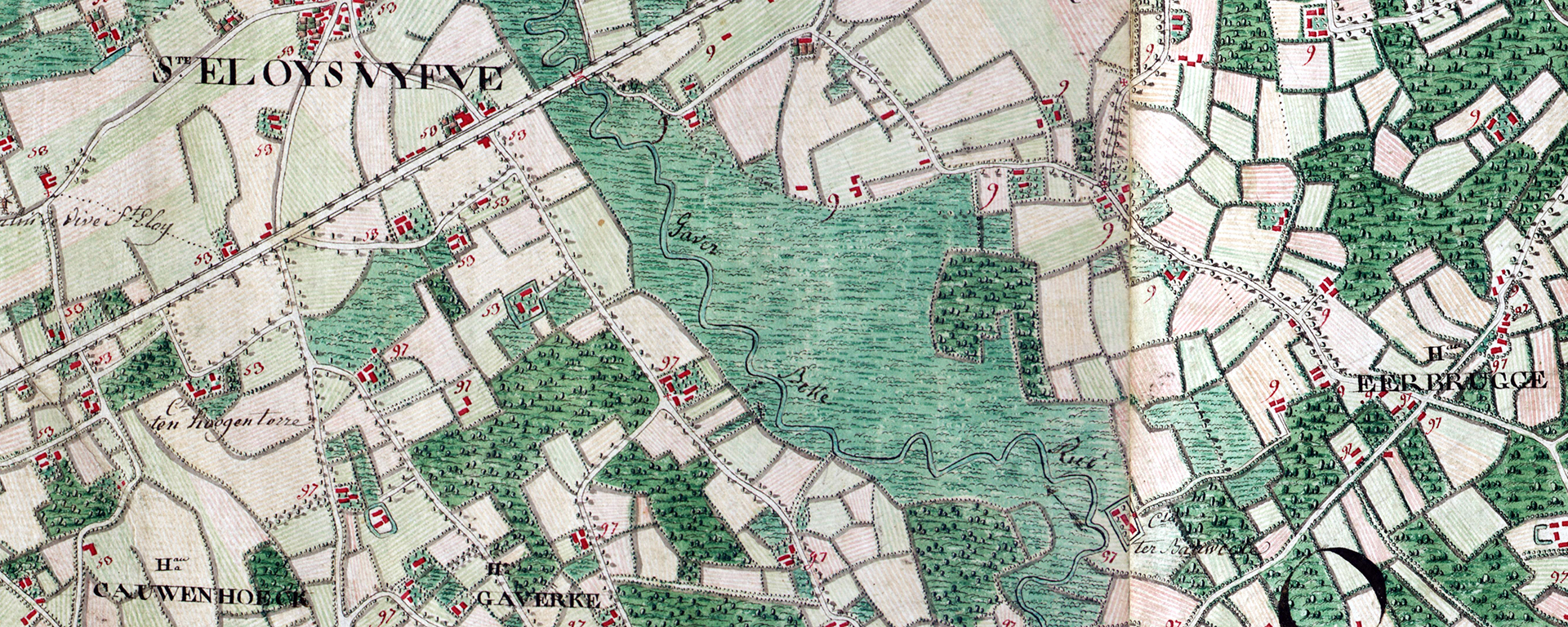 Uitsnede van een kaart van Joseph de Ferraris († 1814). Rechtenvrij.